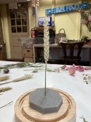 Ik werd opgewacht door Nicole, met wie ik mailde die paar dagen geleden. Eenmaal in de knusse ruimte werd ik helemaal blij van alle (droog)bloem bosjes die ik zag liggen. Wel schrok ik van de harde stemmen van de overige mensen (drie maar toch!) die aanwezig waren. Oei. Gelukkig had ik mijn oordopjes bij me. Juist doordat ik in een hoekje iets afgezonderd zat, hoefde ik maar 1 oordopje in te doen. Zo kon ik toch de instructie duidelijk meepakken, maar ook de prikkels dempen.