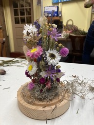 Soms moesten er zaken met een heet lijnpistool gedaan worden, dat vond ik iets te eng met mijn tragere informatieverwerking en motoriek, dus heb ik daar hulp bij gevraagd. Ook de slappe stengels van mini-bloemen die ik er perse in wilde hebben werd voor mij kundig op de juiste plek geplaatst.